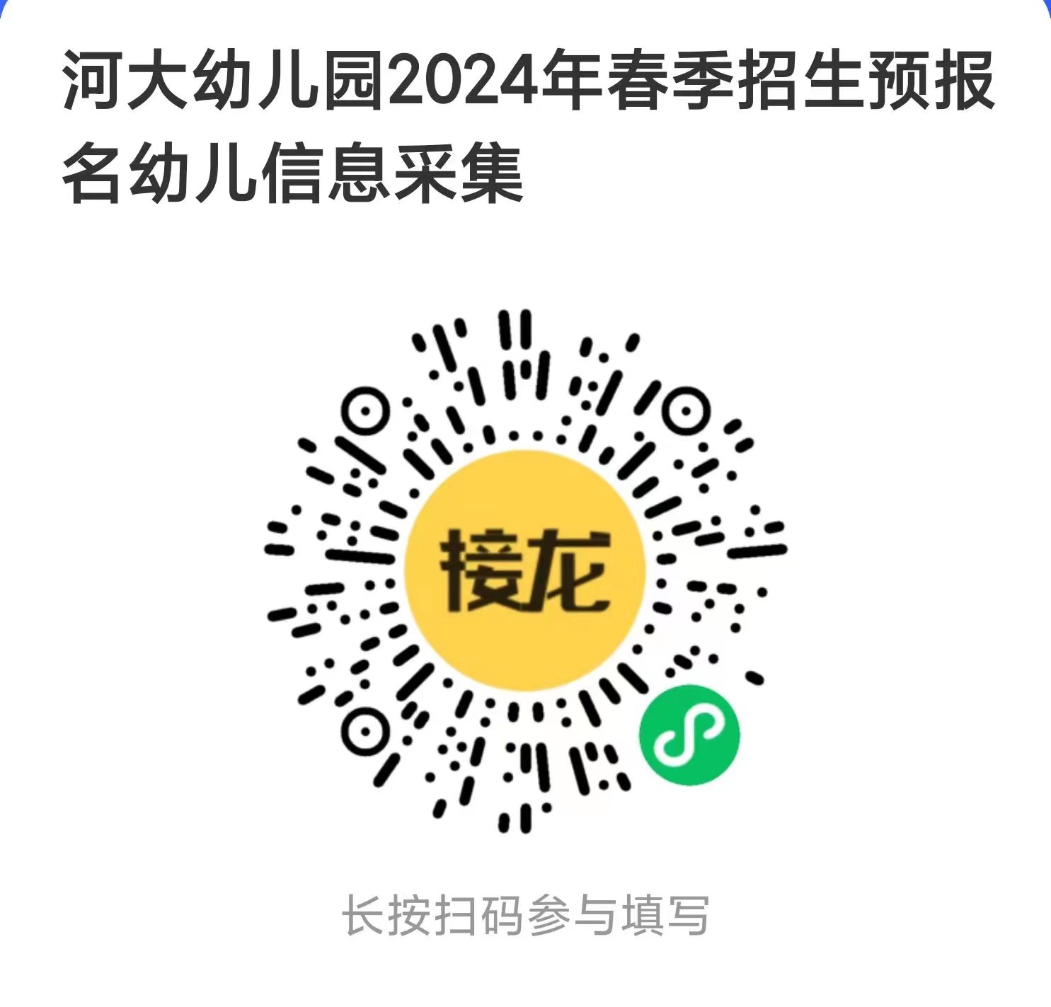 微信掃描下方二維碼,通過“接龍管家”小程序線上提交資料進行報名。