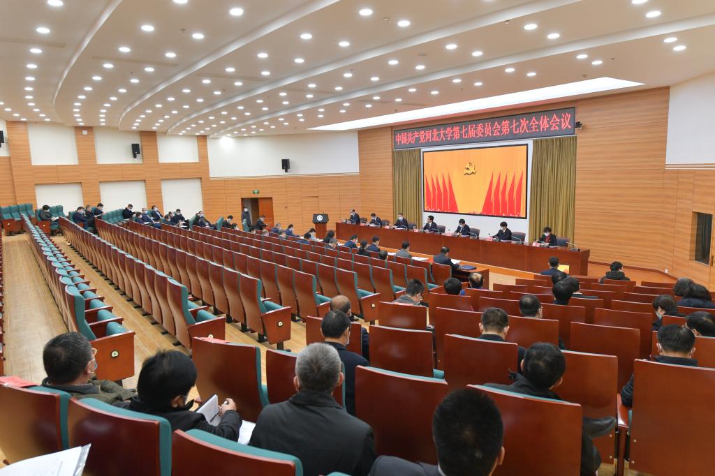 12月30日上午,中國共產黨河北大學第七屆委員會第七次全體會議勝利召開。會議堅持以習近平新時代中國特色社會主義思想為指導,深入學習貫徹黨的十九大和十九屆歷次全會精神,認真貫徹落實黨史學習教育總結會議精神、河北省第十次黨代會精神,聽取了黨委常委會工作報告和七屆黨委第一輪巡察工作報告,研究推薦了出席黨的二十大代表候選人推薦人選。會議由學校黨委常委會主持。23名校黨委委員參加會議,校紀委委員、基層黨委(黨總支、直屬黨支部)書記,有關部門負責同志列席會議。