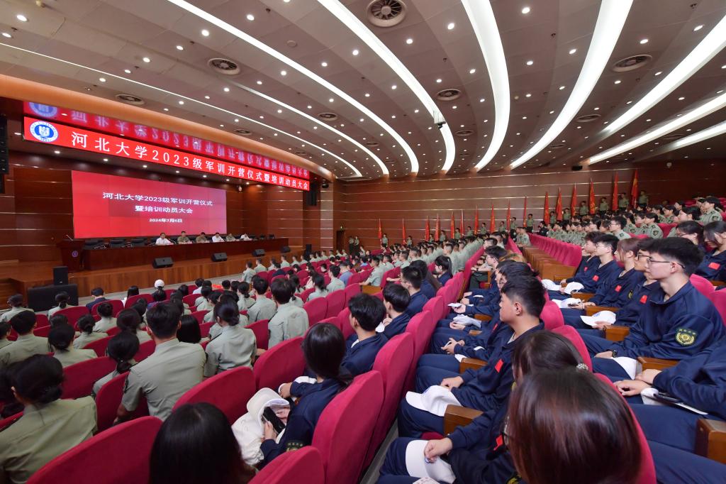全體承訓教官、學校黨委武裝部負責人、各院系分管學生工作的院領導和團委書記/學工辦主任,2023級參訓學生代表近500人參加了開營儀式暨培訓動員大會。