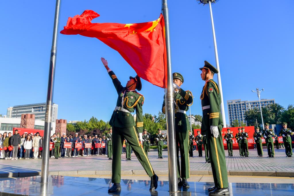為慶祝中華人民共和國成立75周年,弘揚愛國主義精神,進一步激勵全校師生堅定理想信念,凝聚奮進力量,10月1日一早,我校在五四路校區(qū)舉行“禮贊新中國奮進新時代”主題升旗儀式。學校黨委常委、副校長梁巍,黨委學生工作部、相關學院負責同志,師生代表500余人參加了活動。