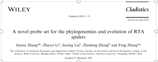近日,我校生命科學學院蛛形學研究團隊的張俊霞副教授在國際著名進化生物學刊物《Cladistics》上在線發表了題為“A novel probe set for the phylogenomics and evolution of RTA spiders”的研究論文。該研究中設計的UCE(超級保守元件)探針具有更多的基因位點和較高的捕獲效率,引領了重要的蜘蛛類群——RTA分支的系統學和進化分類研究。