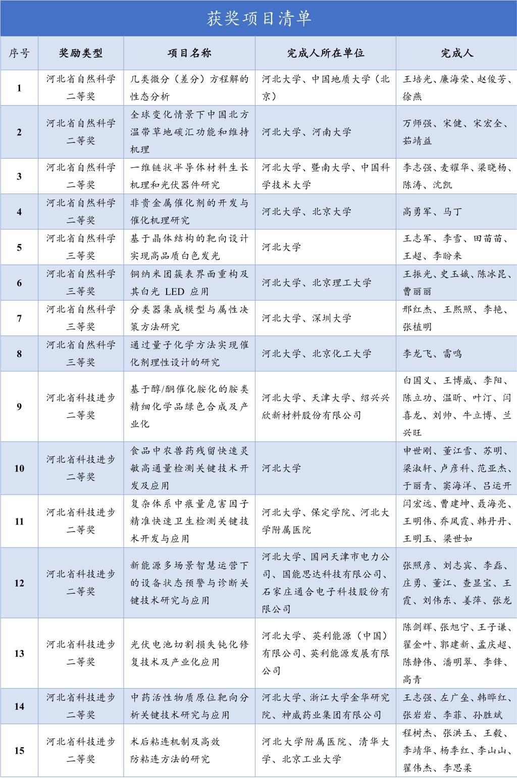 河北省科學技術獎由河北省人民政府設立,旨在表彰在河北省科學技術活動中做出突出貢獻的個人和組織。經過形式審查、網絡評審、行業評審和總評答辯等程序,最終共評出2023年度河北省科學技術獎253項(人/組織)。河北大學共獲2023年度河北省科學技術獎15項(詳見獲獎清單),其中二等獎次突破10項;自然科學獎8項,占全省自然獎總數32%。