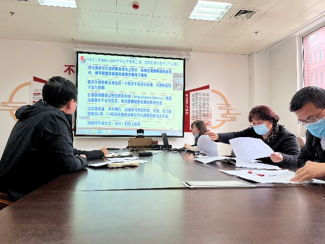 2.為保證在線課程教學質量,學院成立了以書記、院長為組長的教學督導小組。開課以來,督導小組成員盡責盡職,對所有課程的線下巡視做到了全覆蓋,與學校、學院教學兩級督導線上巡課形成聯動機制。
