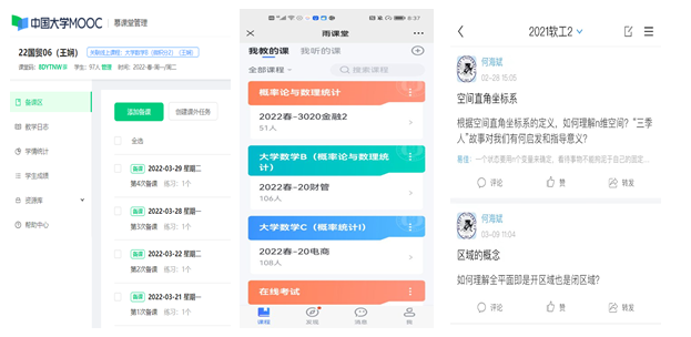 為保障線上教學不受網(wǎng)絡等原因影響,使授課過程達到最佳效果,并充分結合課程特點、授課需要,大數(shù)部各教研室通過不斷實踐摸索,總結出了適合課程組需要的授課模式。如:微積分課程組采用自有慕課+直播混合式教學模式、高等數(shù)學教研組采用自建課程+直播混合式教學模式、概率論與數(shù)理統(tǒng)計課程組采用雨課堂+QQ群直播混合教學模式,線性代數(shù)課程組采用學習通+內(nèi)嵌騰訊會議混合教學模式。