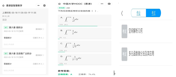 大數(shù)部全體教師注重課后的章節(jié)測驗,并以此了解學生對各知識點掌握程度。如:利用慕課堂、學習通等平臺組織在線隨堂測驗,結合平臺統(tǒng)計的正確率,針對學生掌握不牢固的知識點進行重點講解,以提高學生的學習成效,保障線上教學期間的教學質(zhì)量。