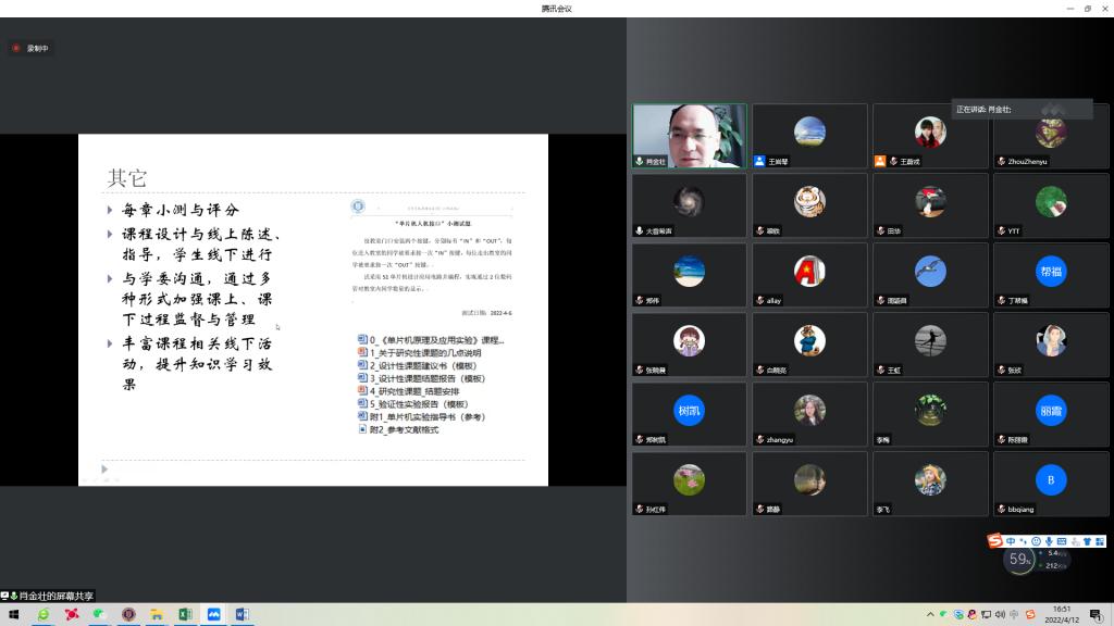 組織教師線上教學經驗交流會,分享線上教學優秀做法。4月12日下午,學院為總結近一個月來線上教學情況,由張欣副院長主持,以視頻會議的形式召開了“電信學院線上教學經驗交流會”。會上肖金壯和田曉燕老師結合自身的線上教學體驗分享了心得及做法,鄭偉老師從校督學的角度對線上教學存在的問題及改進措施進行介紹。肖金壯老師分享了自己根據課程特點選擇教學平臺的經驗,從線上線下兩方面相結合進行教學實施,邀請學委現場搭建監控、“電腦+Keil編程=程序開發,電腦+Proteus=電路設計”課程設計方法等方面詳細介紹了自己的經驗做法。田曉燕老師從教學平臺使用、教學要求、教學環節、互動環節、效果檢測及思政融入六個方面分享了《通信原理》課程線上教學的做法與經驗。田老師提到,線上教學要采用多種方法和手段加強與學生的互動,調動學生學習積極性;要做好階段性、過程性考核,及時反饋學生的學習狀況;要加強課程思政建設,從“高度、深度、廣度、熱度”四個維度深入挖掘思政元素,落實立德樹人的根本任務,將價值塑造、知識傳授和能力培養三者融合。鄭偉老師從校督學的角度介紹了近期線上授課督導情況,強調教師要做好四點要求:一是做好“充足”線上授課準備,包括選擇適合的線上教學平臺、提前測試設備、要出鏡,將積極向上的精神像“小太陽”一樣傳遞給學生;二是嚴格遵守紀律,按照規定的時間上下課;三是充分利用線上平臺加強與學生互動;四是做好充分的備課準備,要精心設計課程ppt等,保證線上線下教學質量的實質等效。會后,參會老師紛紛表示,在本次交流會上受益良多,很多問題迎刃而解。
