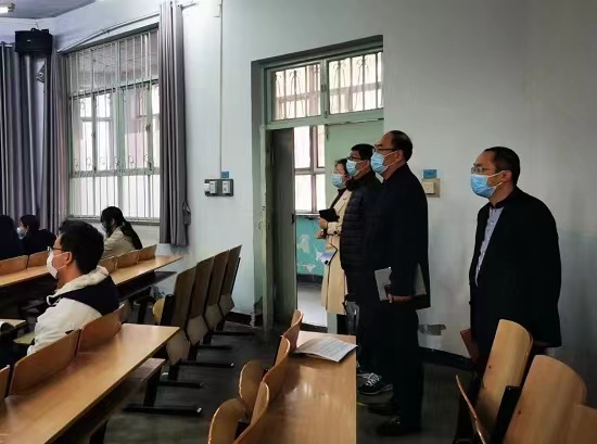 為全方位了解和監督線上教學運行狀況和教學質量水平,2022年11月8日上午第三、四節課,黨委常委、副校長孟慶瑜帶領教務處、教評教發中心相關人員深入一線課堂開展專項檢查督導。