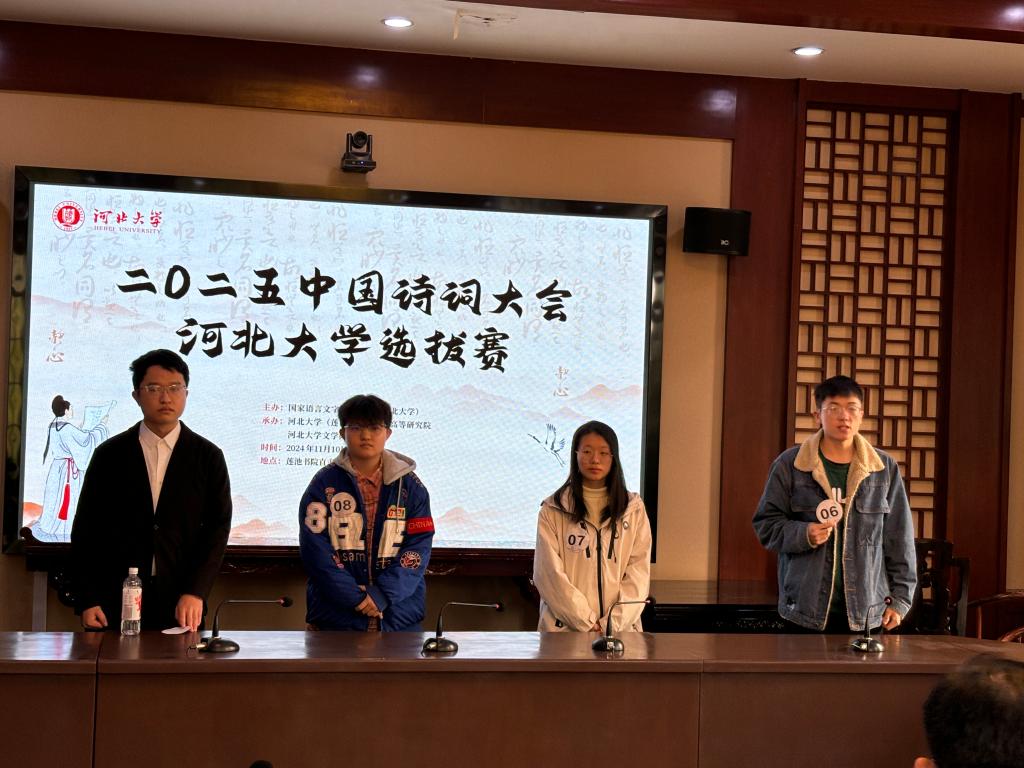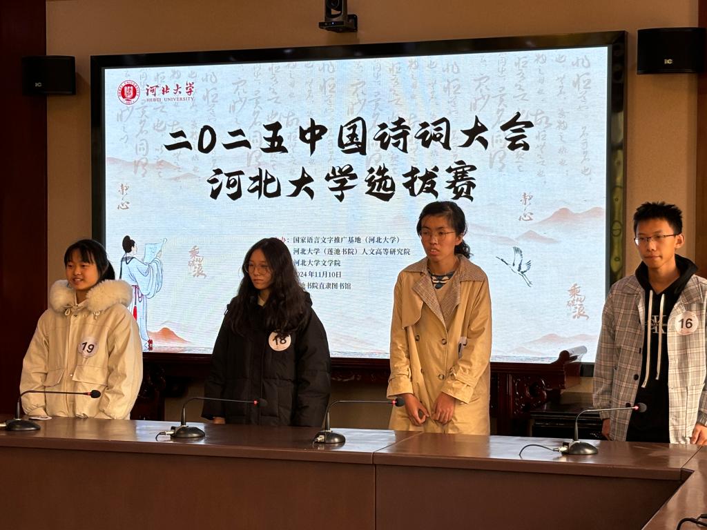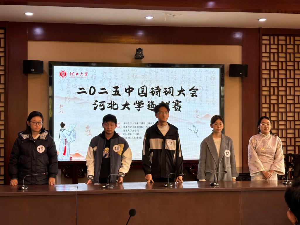 為貫徹落實(shí)習(xí)近平總書記關(guān)于弘揚(yáng)中華優(yōu)秀傳統(tǒng)文化的重要指示精神,培養(yǎng)廣大青少年學(xué)習(xí)中華經(jīng)典詩(shī)詞的熱情,提高語(yǔ)言文字應(yīng)用能力,提升文化素養(yǎng),促進(jìn)文化自信,由國(guó)家語(yǔ)言文字推廣基地(河北大學(xué))主辦,(蓮池書院)人文高等研究院、文學(xué)院承辦的“2025中國(guó)詩(shī)詞大會(huì)”河北大學(xué)校內(nèi)選拔賽于11月10日成功舉辦。